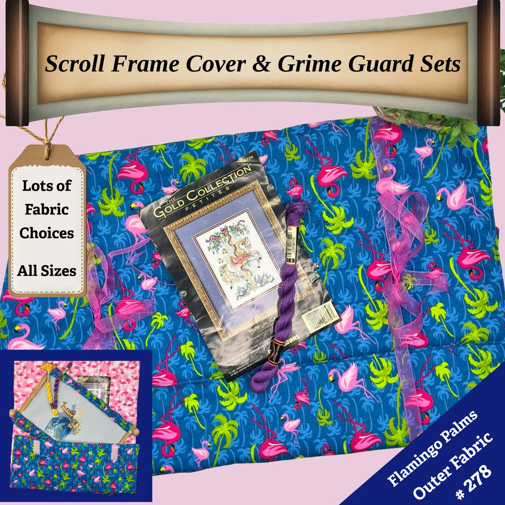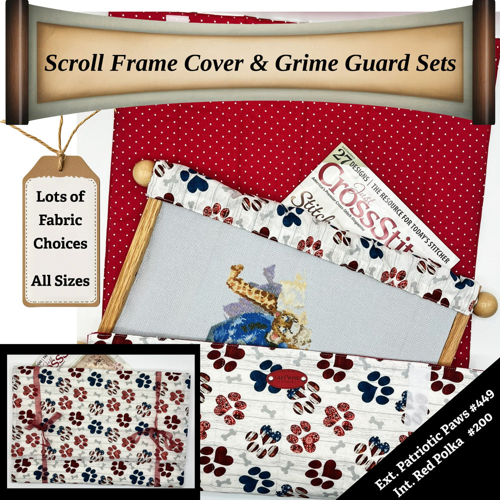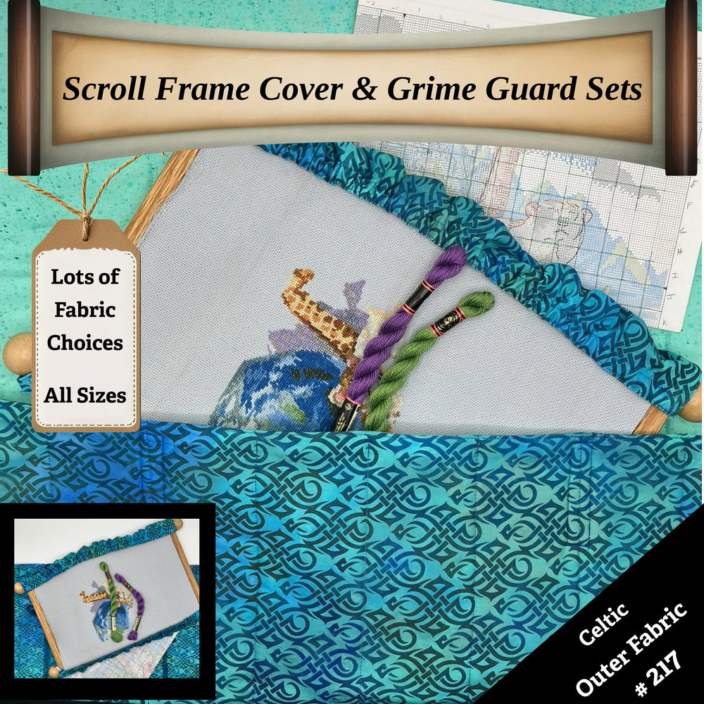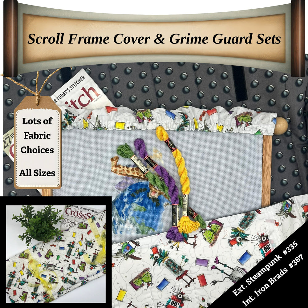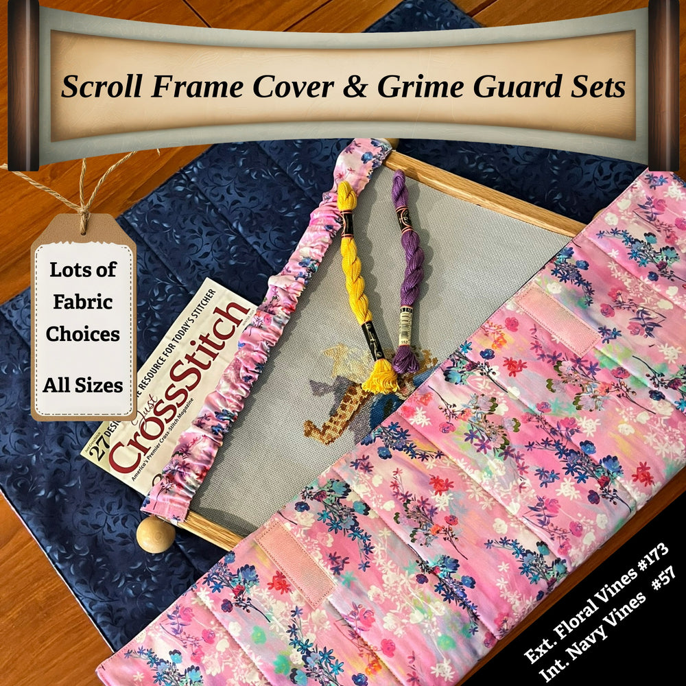 Protect your embroidery, cross-stitch, and needlework projects from dust, pet hair, grime, and hand oils with our handcrafted Scroll Frame Cover & Grime Guard Set. Designed for stitchers who want both style and function, this set keeps your work clean and your scroll frame looking great.