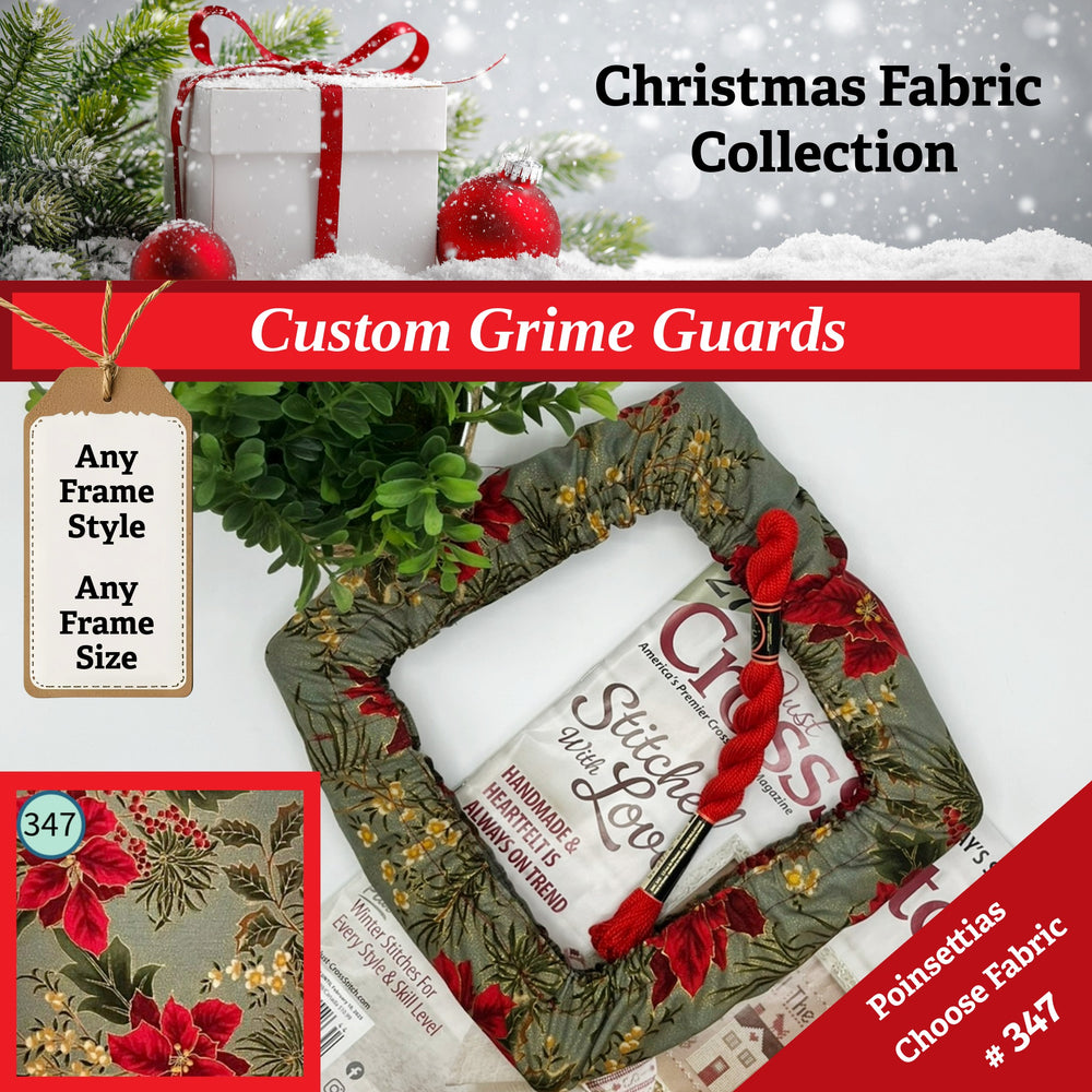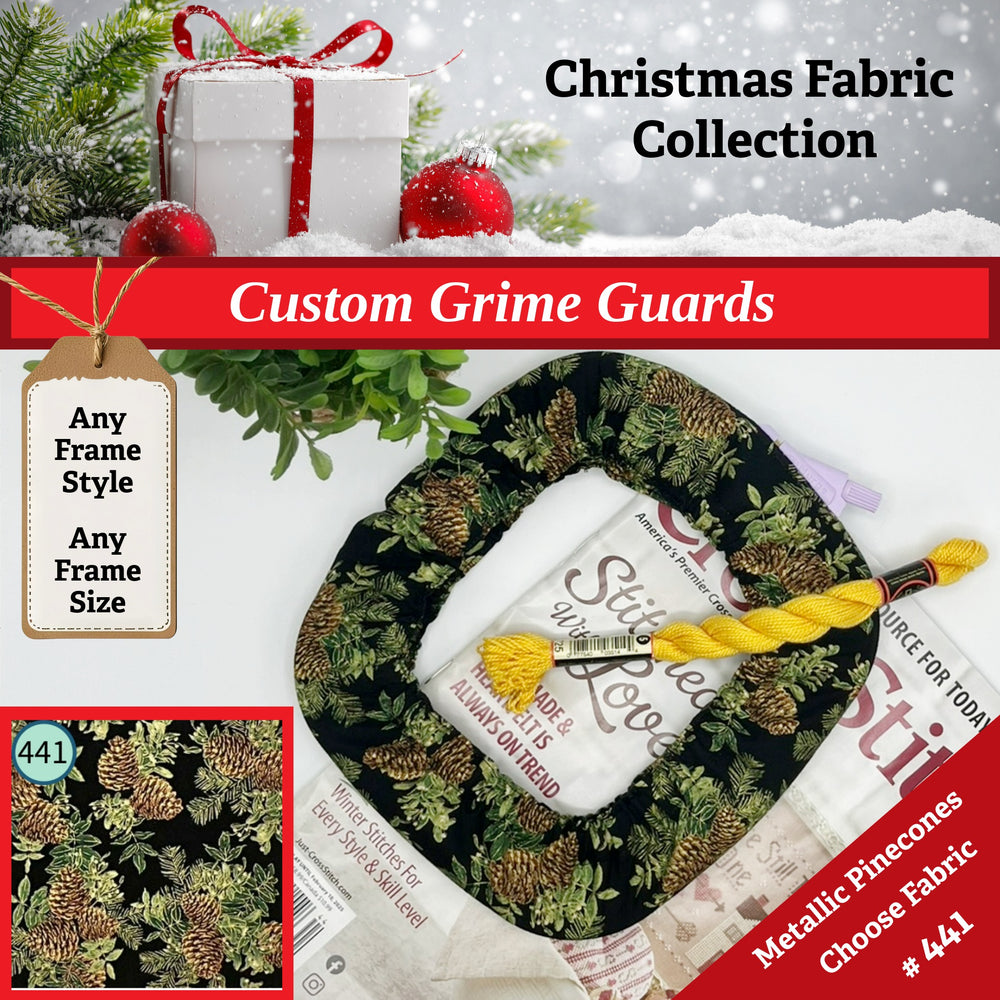 Keep cross stitch and needlework projects in your embroidery hoops clean and grime free with our custom Grime Guards and Scroll Frame Covers, designed to fit your frame type and size.