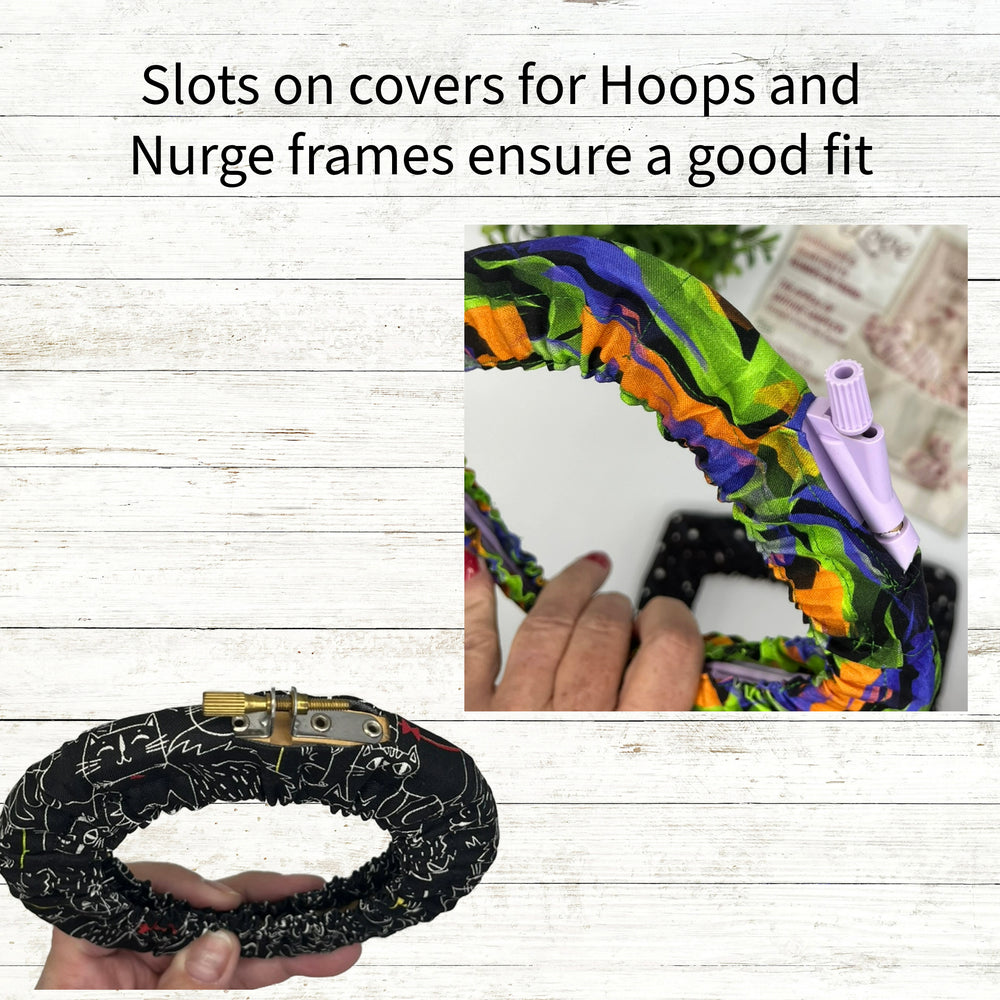 Keep cross stitch and needlework projects in your embroidery hoops clean and grime free with our custom Grime Guards and Scroll Frame Covers, designed to fit your frame type and size.